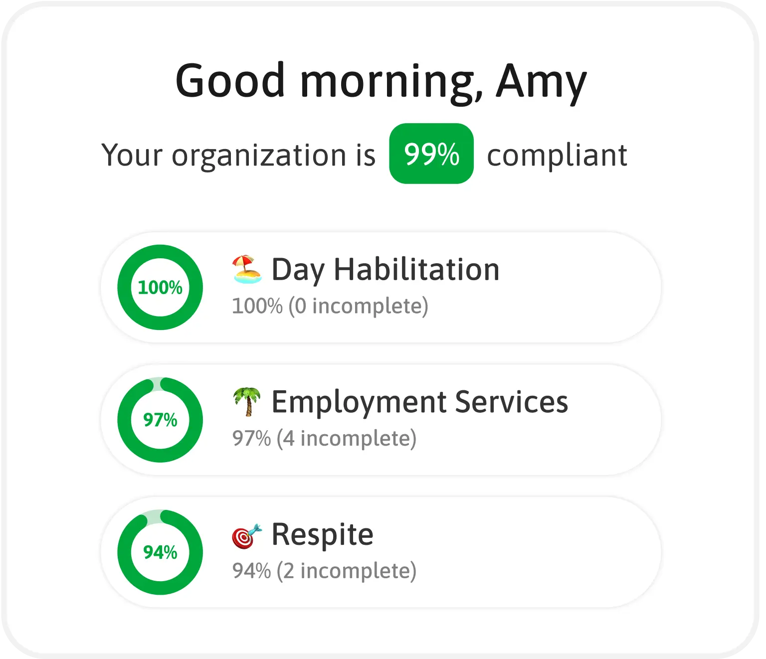 Kibu partners average over 99.2% compliance within their first 2 months.